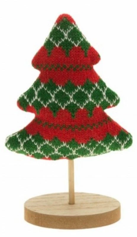 Chaks 12410, Déco Sapin Tricot Noël Rouge/vert 17 Cm Sur Socle Bois