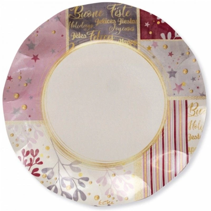 Chaks 41ZG, Paquet De 8 Grandes Assiettes Carton NOËL 27 CM, Or Rose