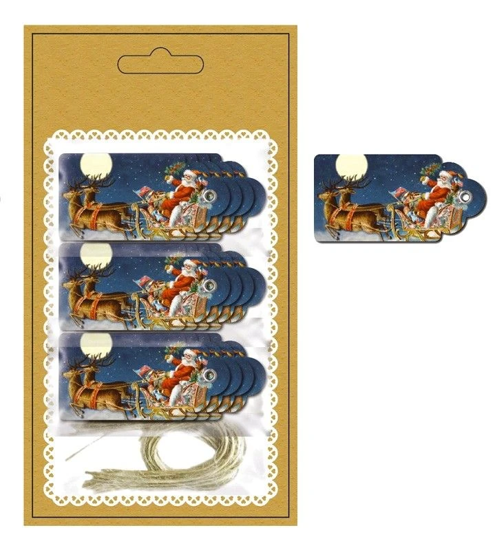 Chaks 90494, Carte 12 étiquettes Oeillets Et Liens, Père Noël En Traineau