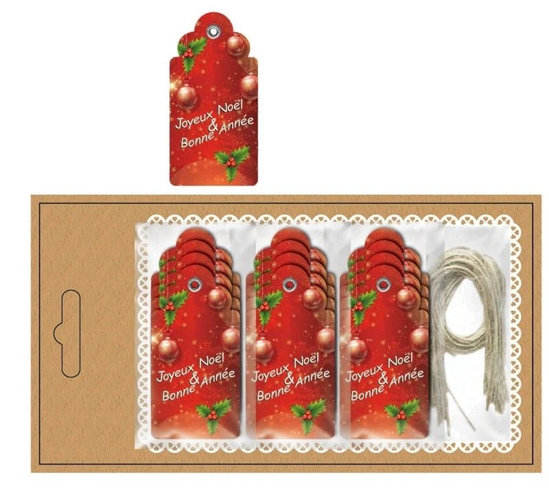 Chaks 90499, Carte 12 étiquettes Oeillets Et Liens, Joyeux Noël & Bonne Année, Rouge