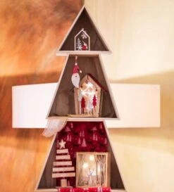 Chaks 10006, Maison Lumineuse Noël Bois Naturel/rouge Avec Leds 24cm