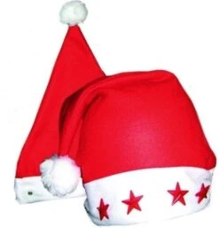 Bonnet de Père Noël avec étoiles rouges lumineuses.