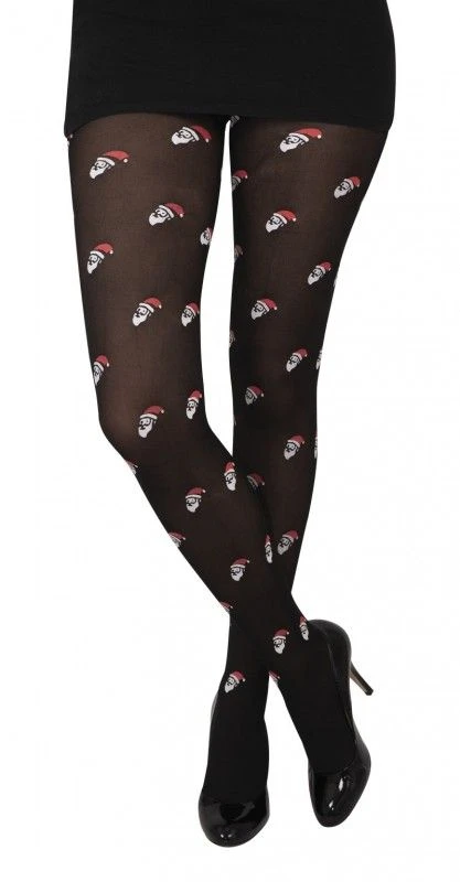 P’TIT Clown Re74173 – Collant Noir Impression Têtes De Père Noël