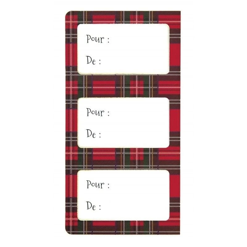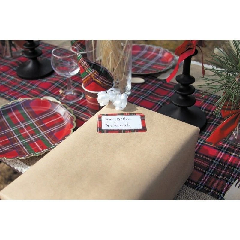 Party Pro 913501T, Sachet De 12 étiquettes Cadeau De Noël Adhésives Motif Tartan