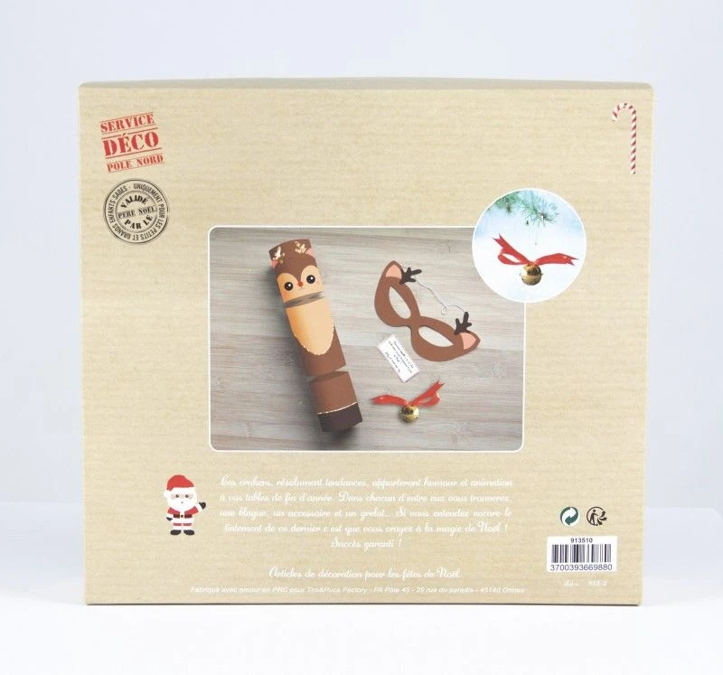 Chaque cracker contient des confettis étoiles, un charms pour verre, 2 planches de minis Stickers (étiquettes pour personnaliser son verre, un cadeau …) et une paire de lunettes en carton.