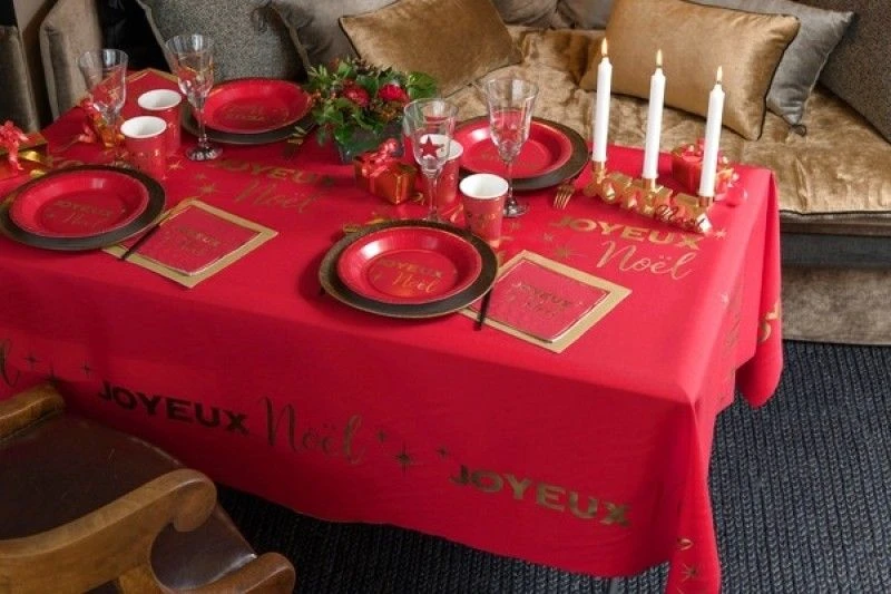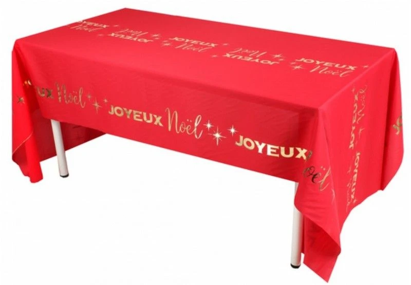 SANTEX 8097-7, Nappe Joyeux Noël Chic, 2,56m Or/Rouge