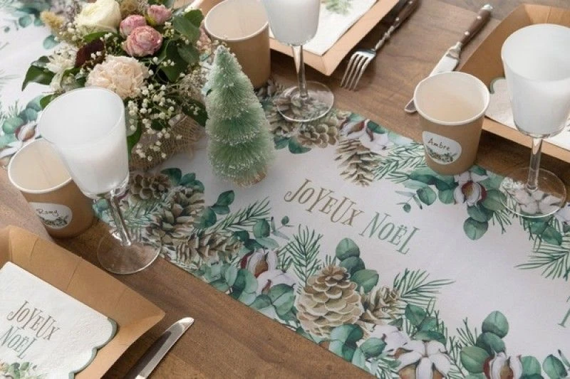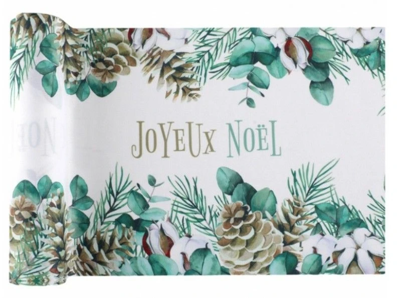 SANTEX 8131-10-30, Chemin De Table Noël Coton 3m, Blanc/vert