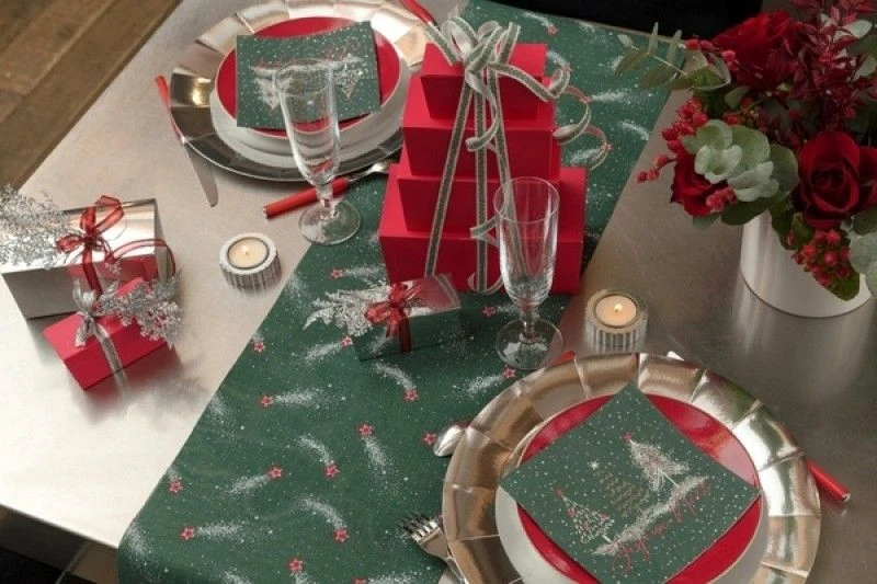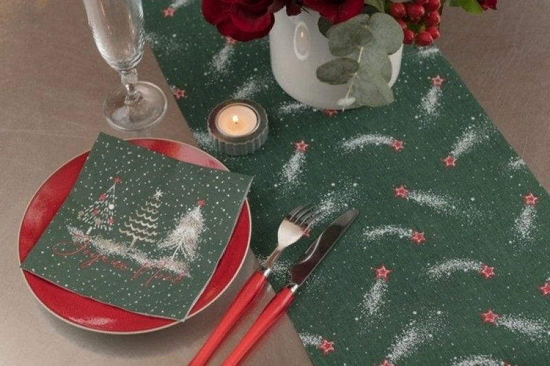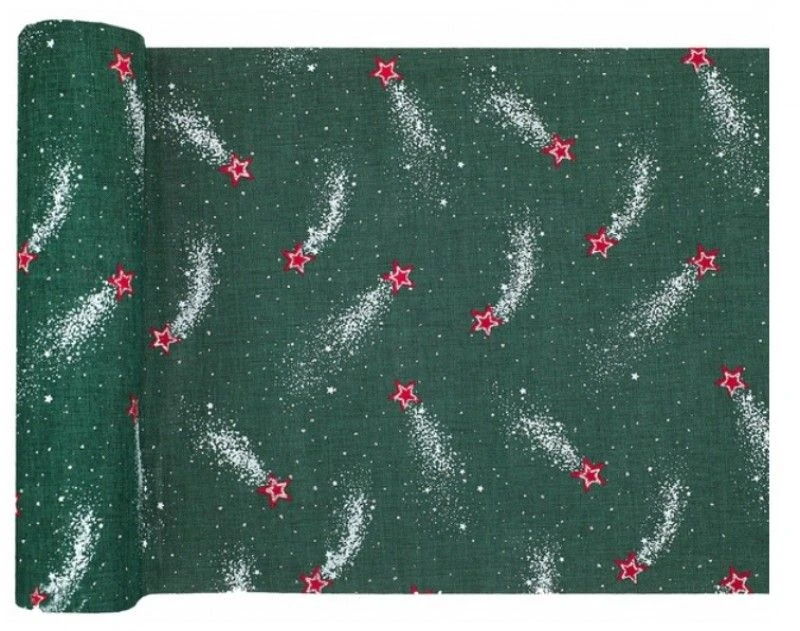 SANTEX 8163-27-30, Chemin De Table Noël Etoiles Filantes, En Coton Vert Sapin 3m