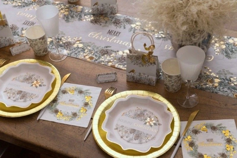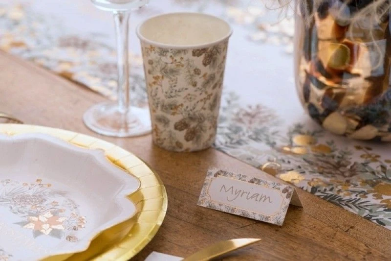 SANTEX 8224-3, Sachet De 10 Marque-places Poinsettia Noël, Blanc/or