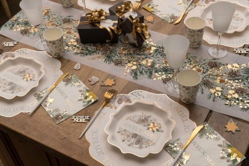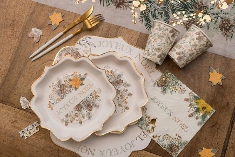 SANTEX 8232-37, Lot De 10 Gobelets Poinsettia Noël 25cl, Blanc/or