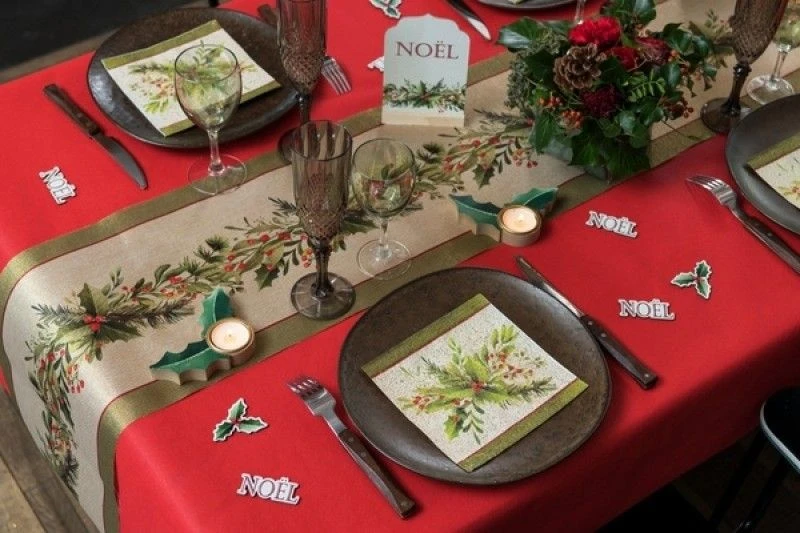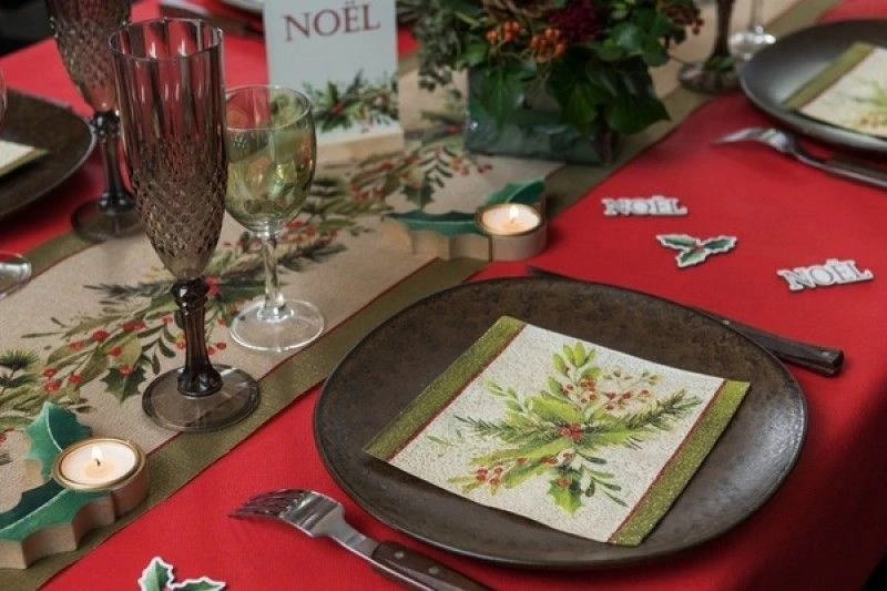 SANTEX 8274-103, Sachet De 10 Serviettes Noël Houx Scintillant 33x33cm Sauge